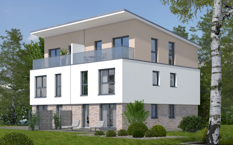 Vorteile im Doppelpack. Gemeinsamkeit hilft sparen. Mit der Entscheidung für ein Doppelhaus werden das Grundstück und das Vermögen optimal genutzt. Dass dabei die Architektur ganz und gar nicht gleichförmig oder gar langweilig sein muss, zeigen unsere Vorschläge der CREATIV-Linie. Und bei der Grundrissgestaltung entstehen in jedem Haus getrennte Wohnbereiche auf mehreren Ebenen. Für ganz viel Privatsphäre und viel Freiheit für die ganze Familie. Individualität und Harmonie – nicht nur für Zwillinge!