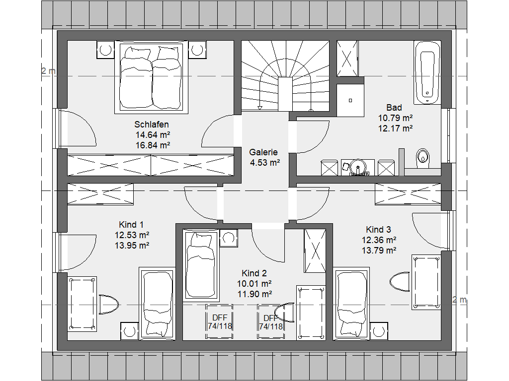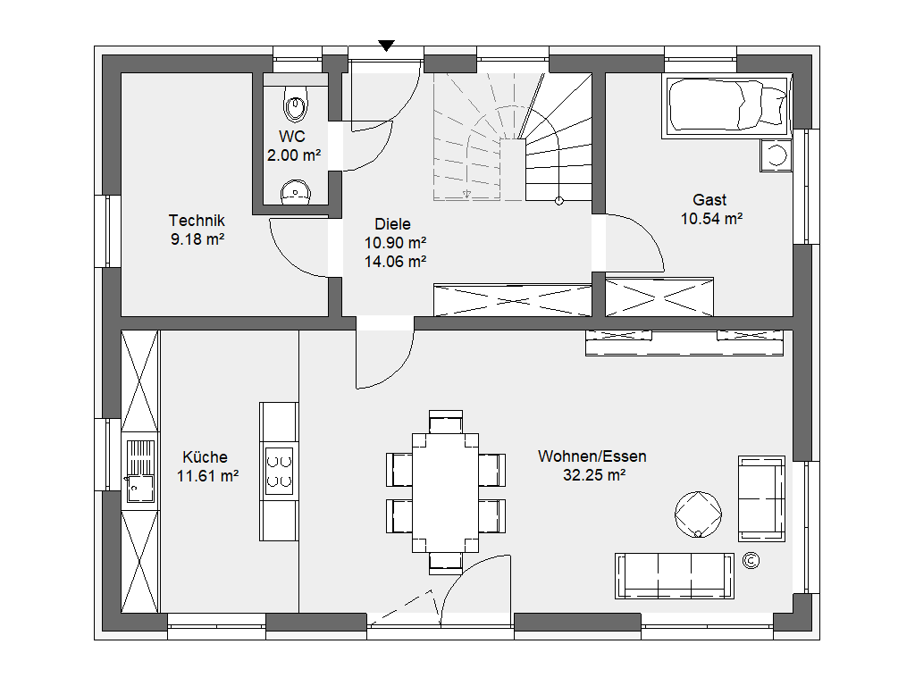 Der klar strukturierte Grundriss verbindet offene Wohnbereich mit praktischen Rückzugsmöglichkeiten und garantiert ein stimmiges Wohngefühl in zeitgemäßer Architektur.