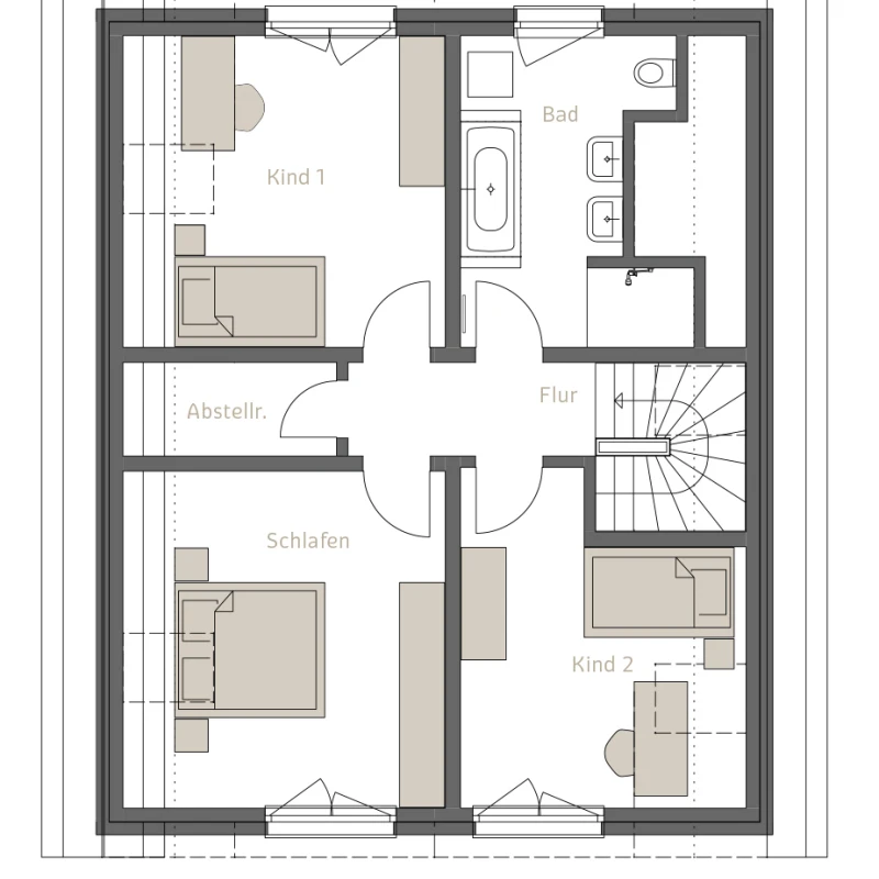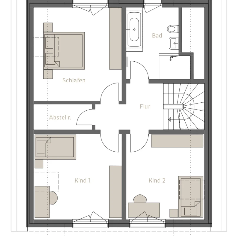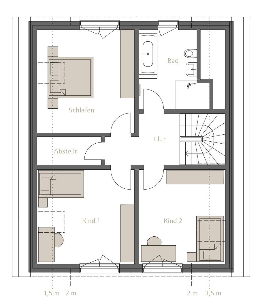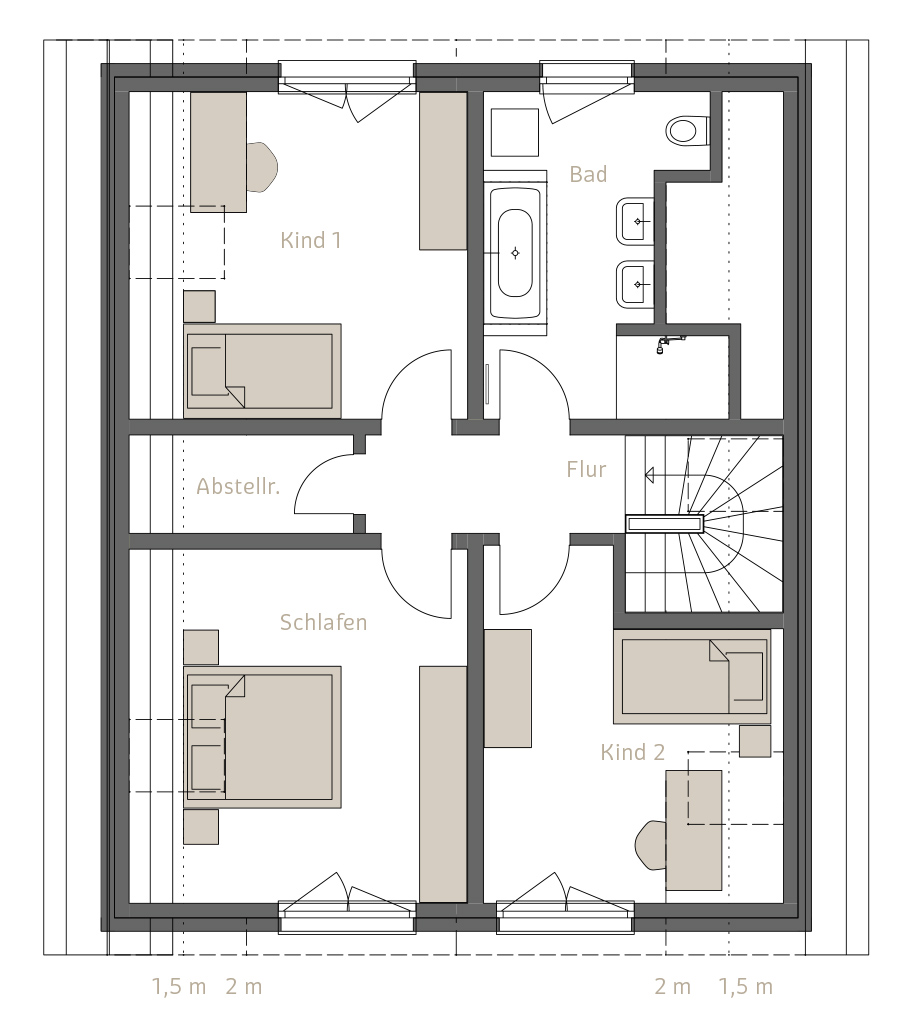 Die beiden Einfamilienhäuser werden in massiver Ziegelbauweise errichtet. Diese sorgt für ein gesundes Raumklima, hervorragende Wärmedämmung und Langlebigkeit. Die Häuser sind speziell für die Bedürfnisse junger Familien geplant.