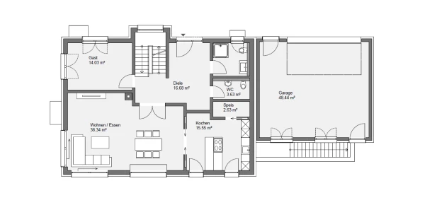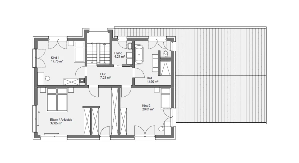 Im Erdgeschoss befindet sich der Wohnbereich des Gebäudes. Dieser verfügt über knapp 84m² und wurde mit einer Fußbodenheizung in Verbindung mit einer klimafreundlichen Luft-Wasser-Wärmepumpe ausgestattet. Das Obergeschoss bietet ca. 94m² Wohnfläche - ausreichend Platz zum Leben und Wohlfühlen. Das Highlight des Obergeschosses ist unsere innovative Ziegel-Klimadecke zum Heizen und/oder Kühlen. Nach dem Vorbild der Natur vereinen wir in unserer Ziegel-Klima-Decke die Vorzüge des gebrannten Ziegels mit dem Prinzip natürlicher Wärmestrahlung und stiller Kühlung. Im Winter wohlig warm, im Sommer angenehm kühl.