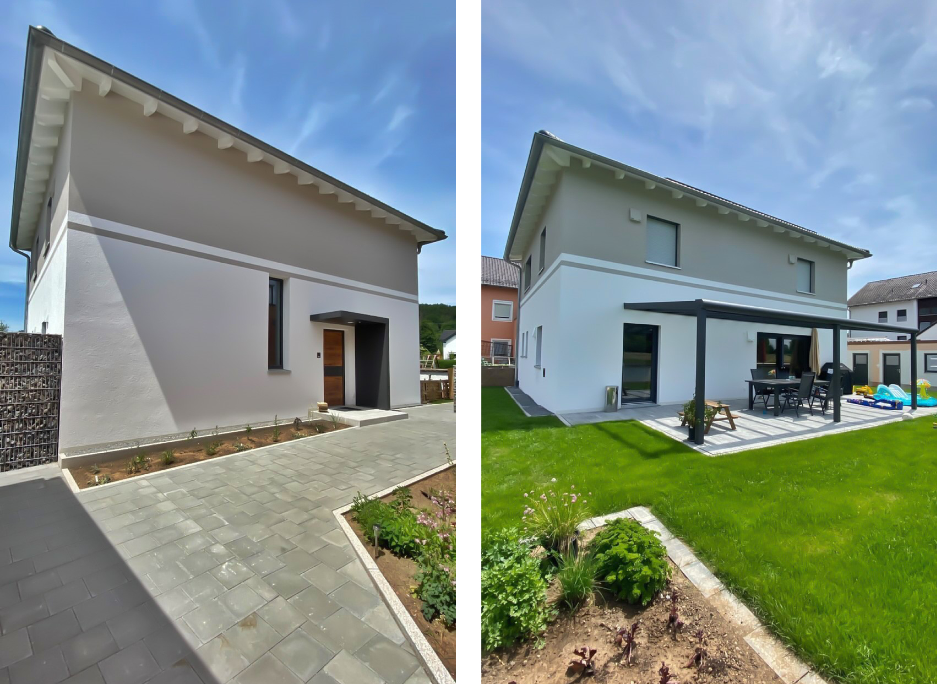 Uns war es wichtig, beim Bau unseres Traumhauses mitzuhelfen. Alle Arbeiten, die wir selbst übernehmen wollten, haben wir vorher genau mit Rötzer abgestimmt. So konnten sie uns hilfreiche Tipps zur Umsetzung geben. Der genaue Ablaufplan, die Koordination der einzelnen Firmen in Kombination mit unseren Eigenleistungen und der Termin für die Hausübergabe wurde wie geplant eingehalten. Dafür auch ein großes Danke an unseren Bauleiter Herr Kraus.