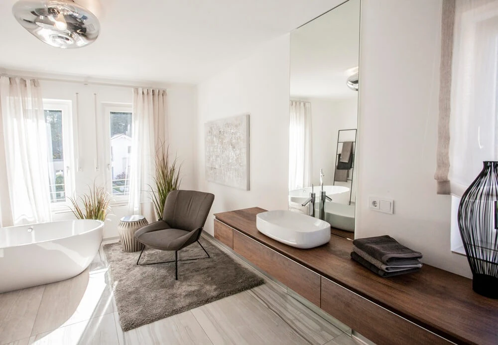 Durch die innovative Ziegel-Element-Bauweise sind Ihren Raumgestaltungsmöglichkeiten keine Grenzen gesetzt. Rötzer Ziegelhaus baut schlüsselfertig – mit Partnern aus der Region. Ihre Vorteile: besonders schnelle Errichtung des Rohbaus durch Vorfertigung. Exakte Einhaltung des kalkulierten Budgets. Und trotzdem mit vielen Extras, wenn Sie es wünschen. Vereinbaren Sie einen persönlichen Beratungstermin. So können wir uns voll und ganz Ihren Fragen widmen. Wir freuen uns, wenn wir Sie persönlich begrüßen dürfen in unserem Musterhaus in Bad Vilbel, Ludwig-Erhardt-Straße 64.